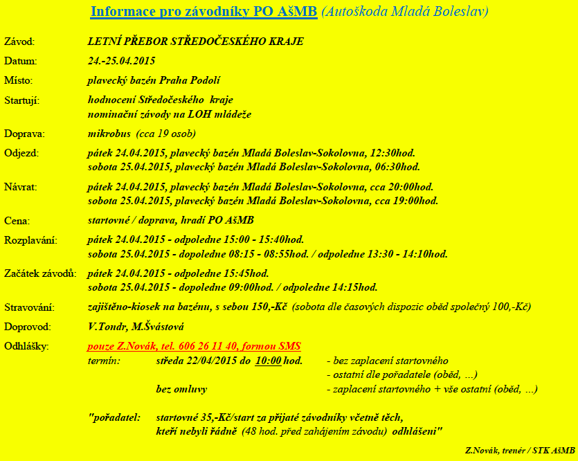 Pokud dorazíte společným autobusem, který odstavíte před bazénem, prosím, o informaci nejpozději